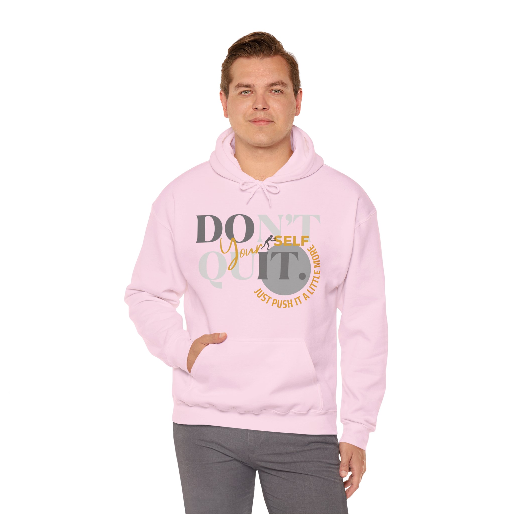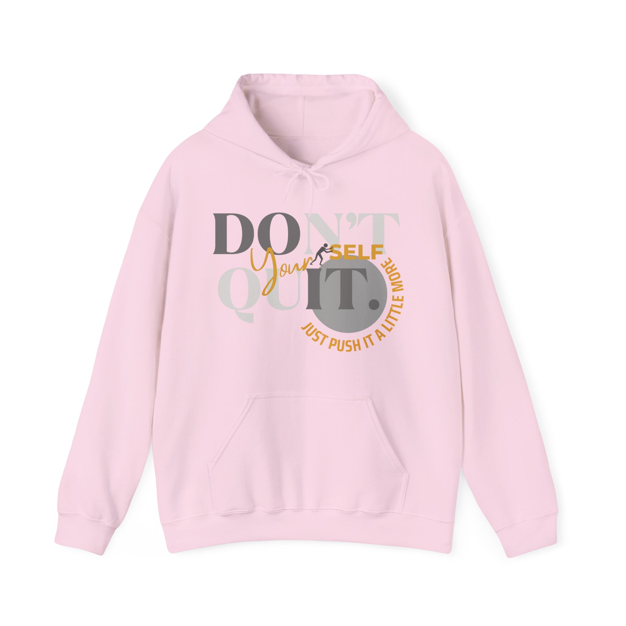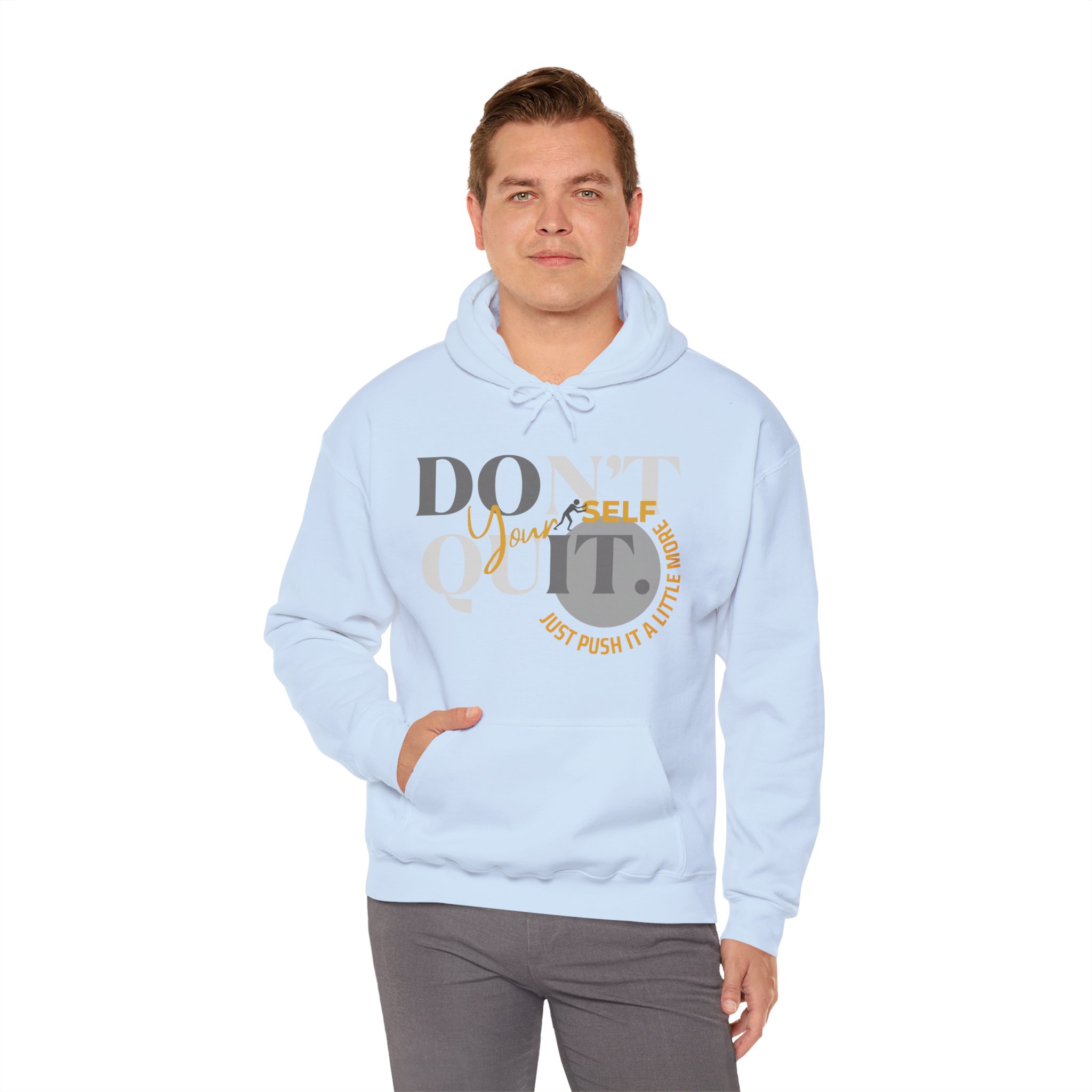 Elevate your spirit with the inspiring message, “Don’t Quit Yourself. Just Push It A Little More.” Embrace the warmth, both in comfort and motivation, as you navigate each day with resilience.