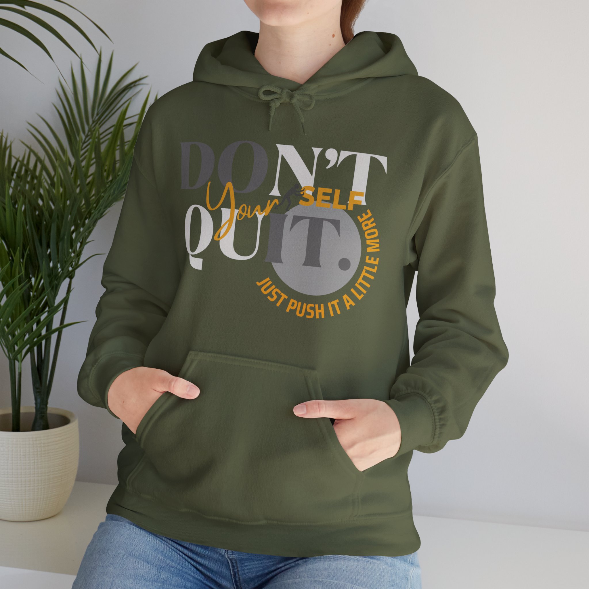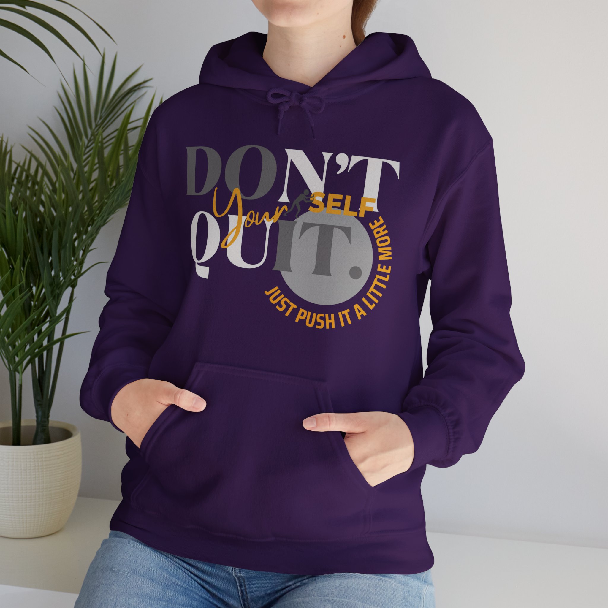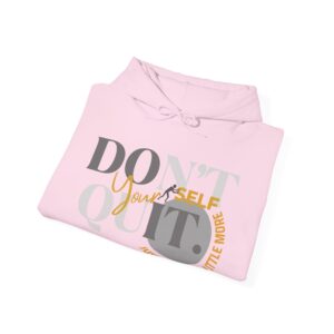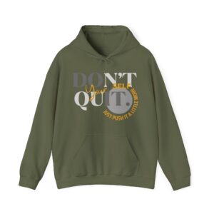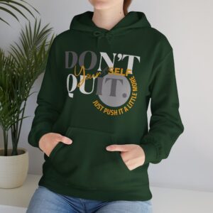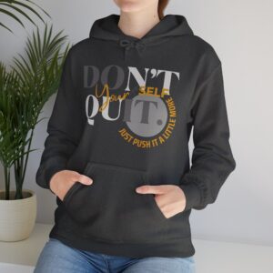 Elevate your spirit with the inspiring message, “Don’t Quit Yourself. Just Push It A Little More.” Embrace the warmth, both in comfort and motivation, as you navigate each day with resilience.