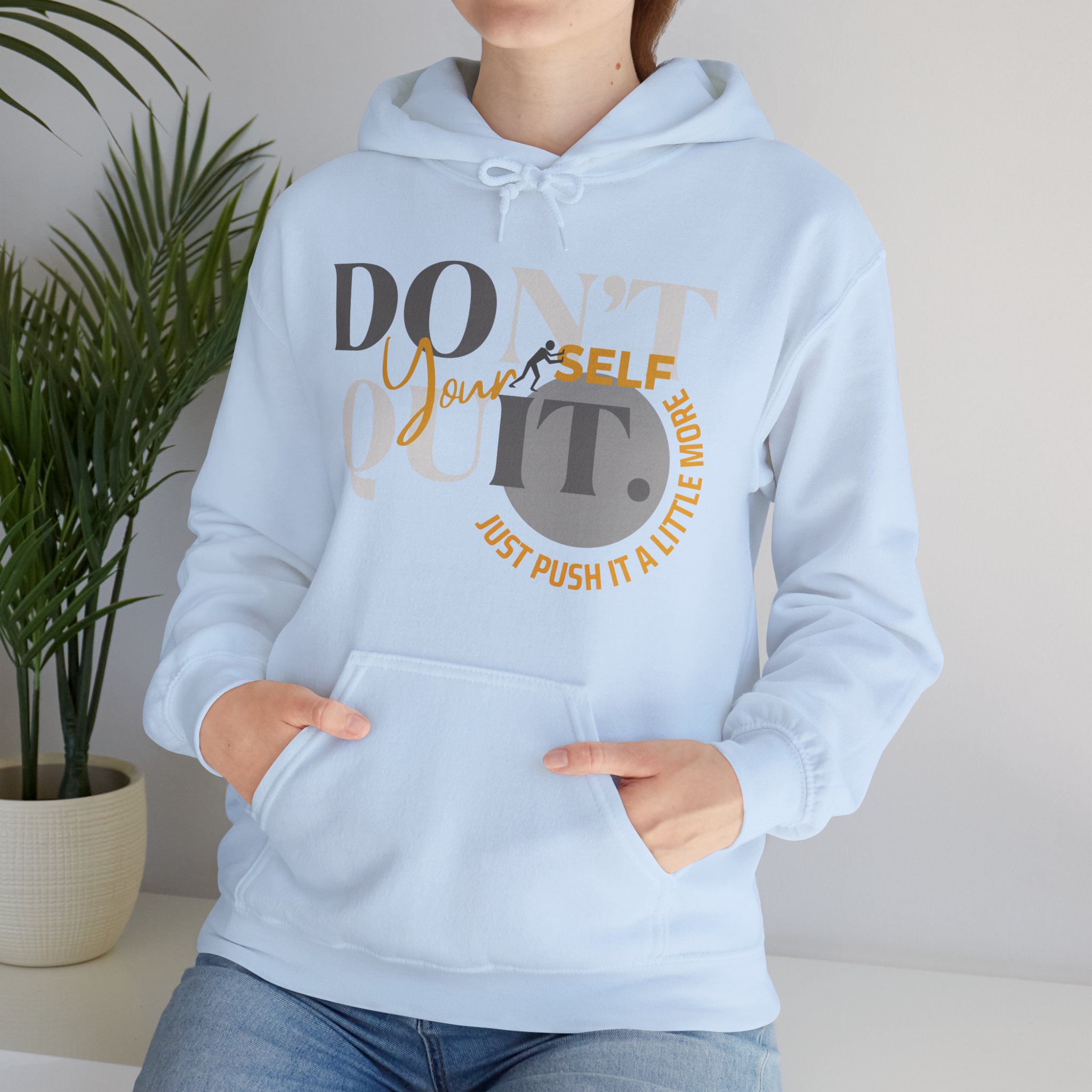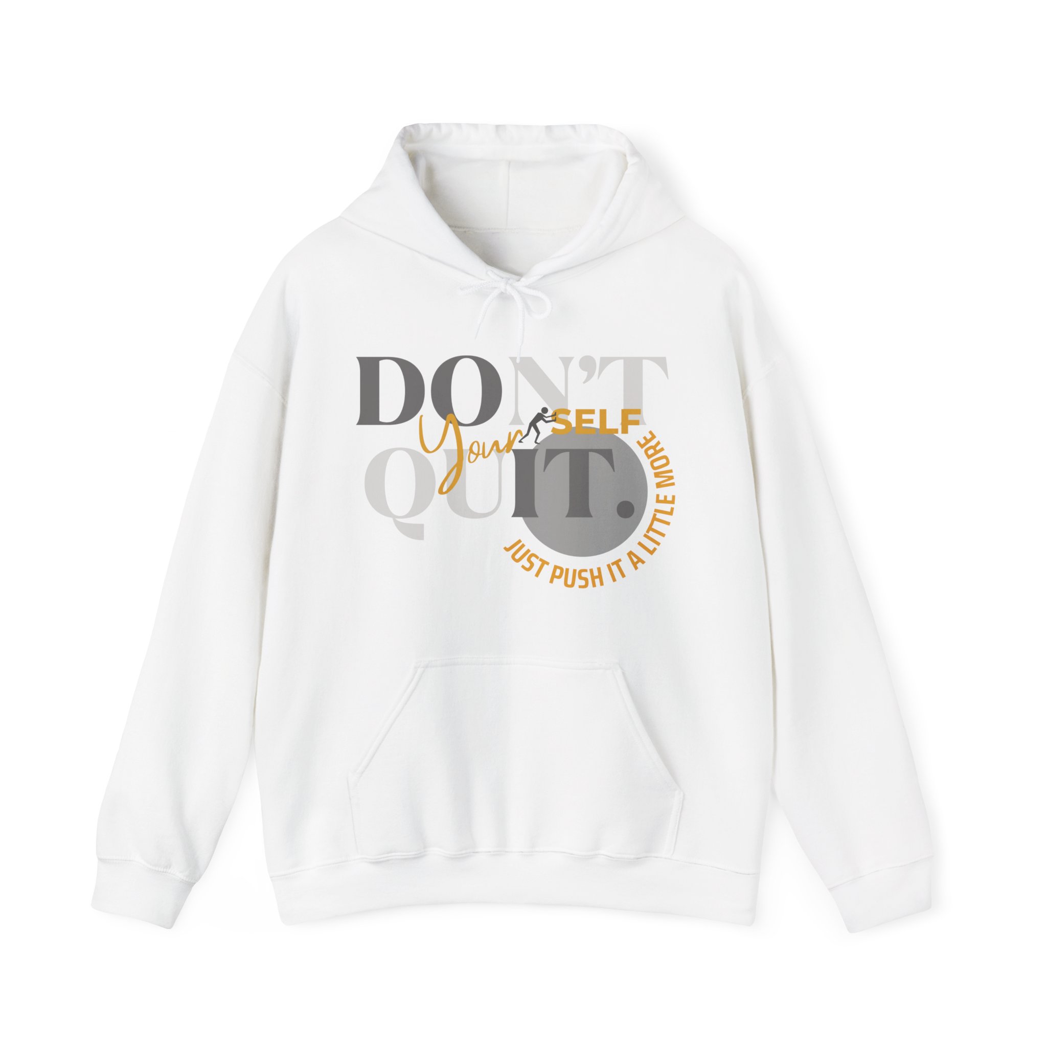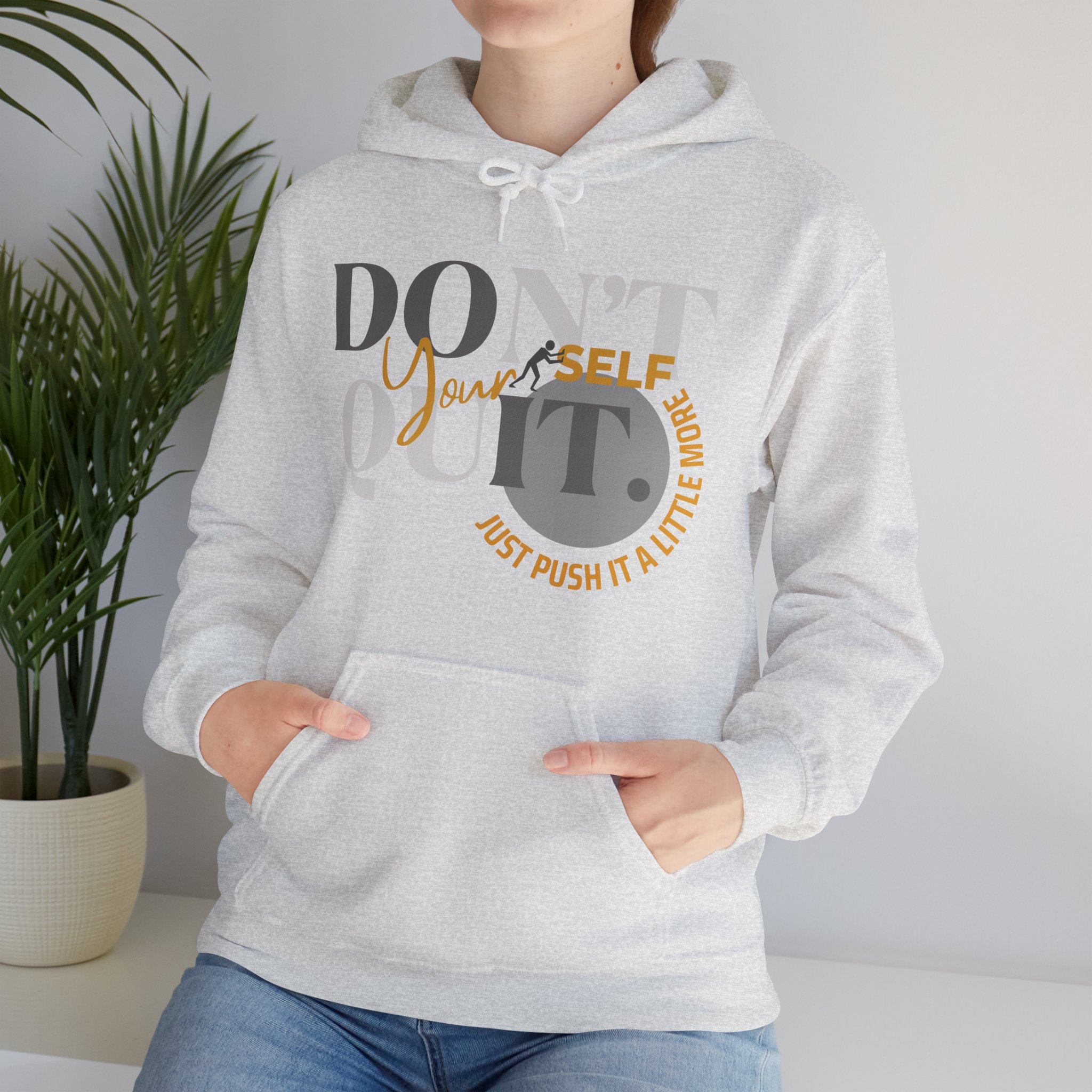 Elevate your spirit with the inspiring message, “Don’t Quit Yourself. Just Push It A Little More.” Embrace the warmth, both in comfort and motivation, as you navigate each day with resilience.