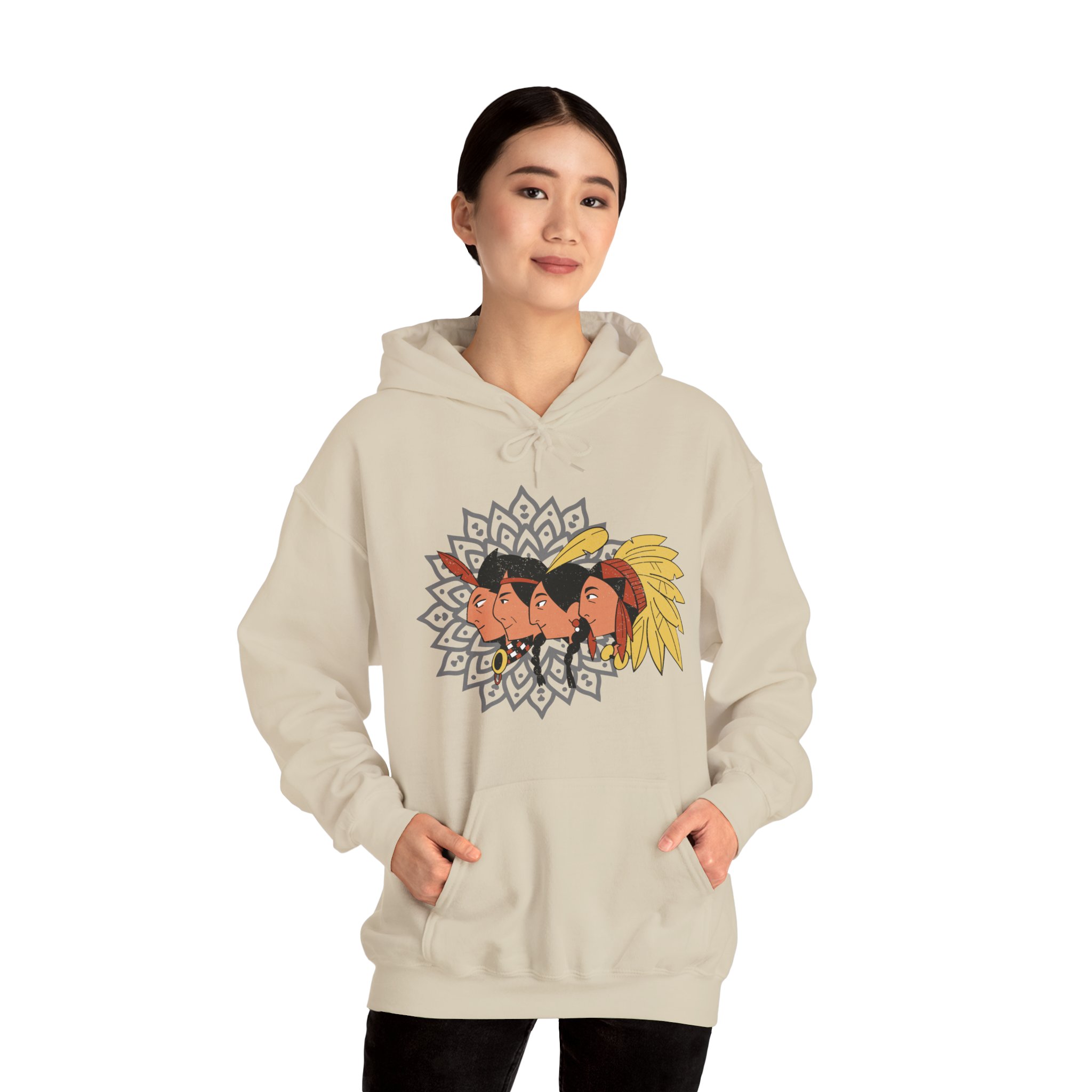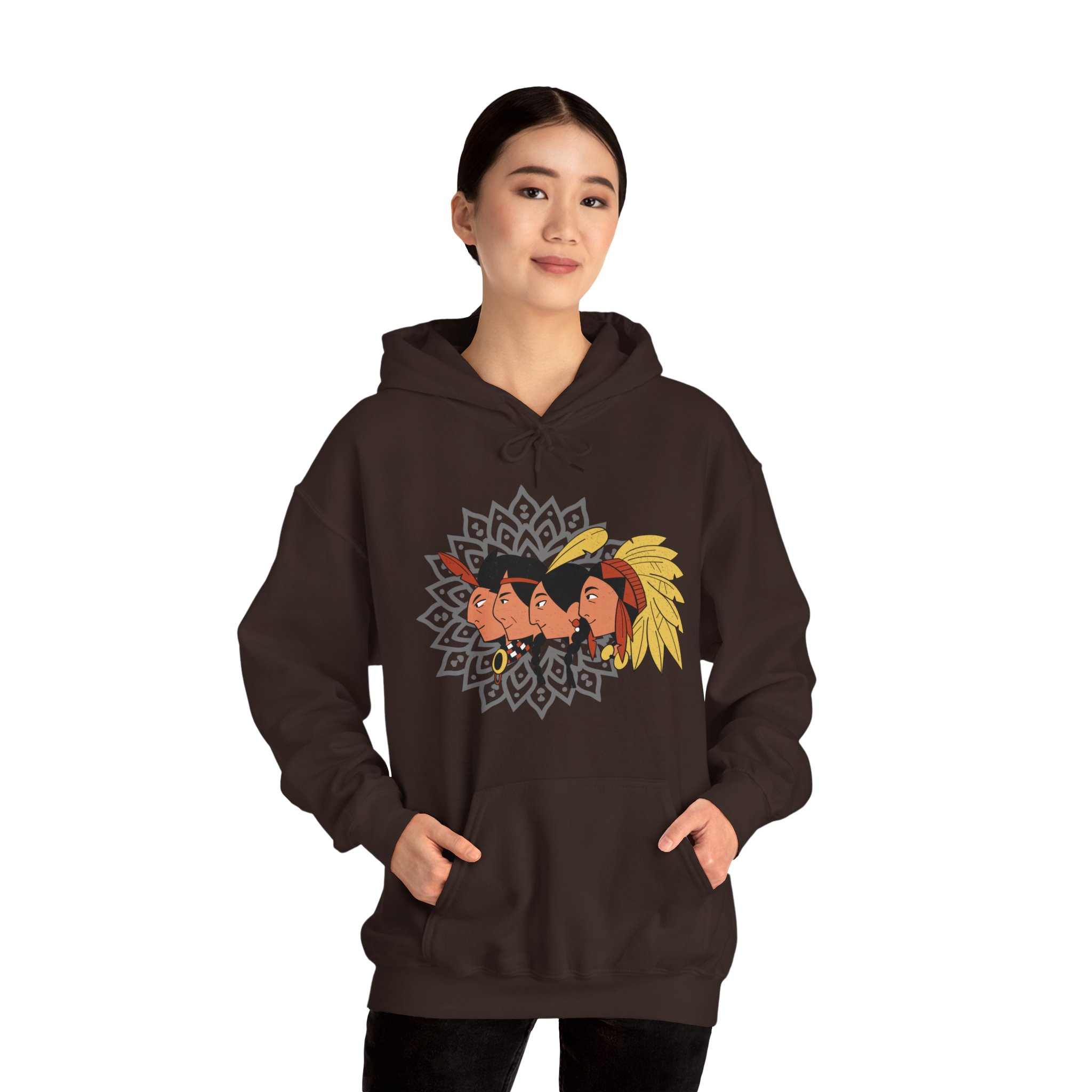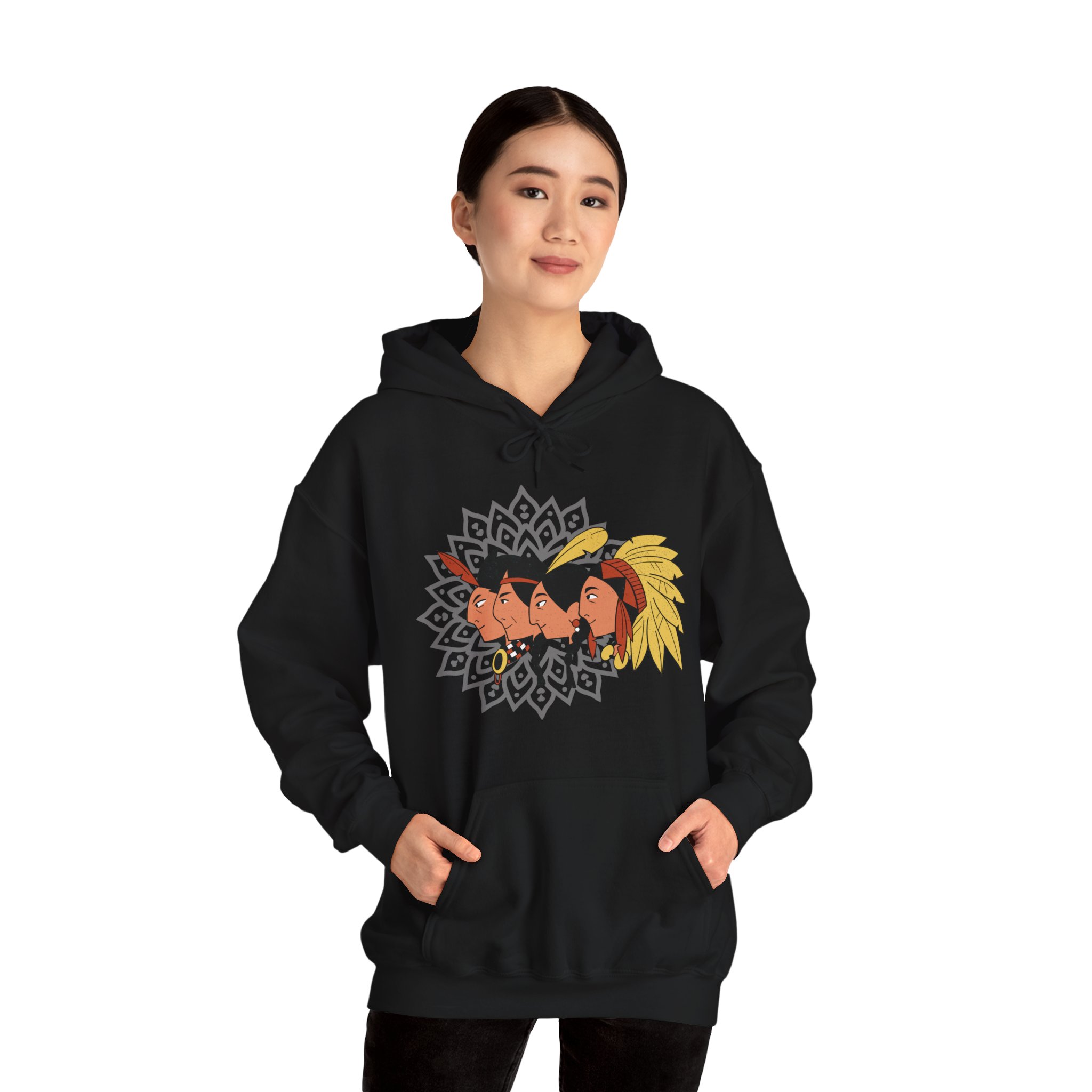 Indulge in the epitome of opulence with our Unisex Tribal Tapestries Hoodie, a showcase of premium craftsmanship and exclusive design. This full-sleeve masterpiece, adorned with captivating tribal face arts, seamlessly merges comfort and style in a symphony of luxurious threads. Envelop yourself in the cocoon of plushness provided by the thick blend of cotton and polyester, creating an unparalleled softness that radiates warmth and coziness, making it the ideal choice for chilly days.